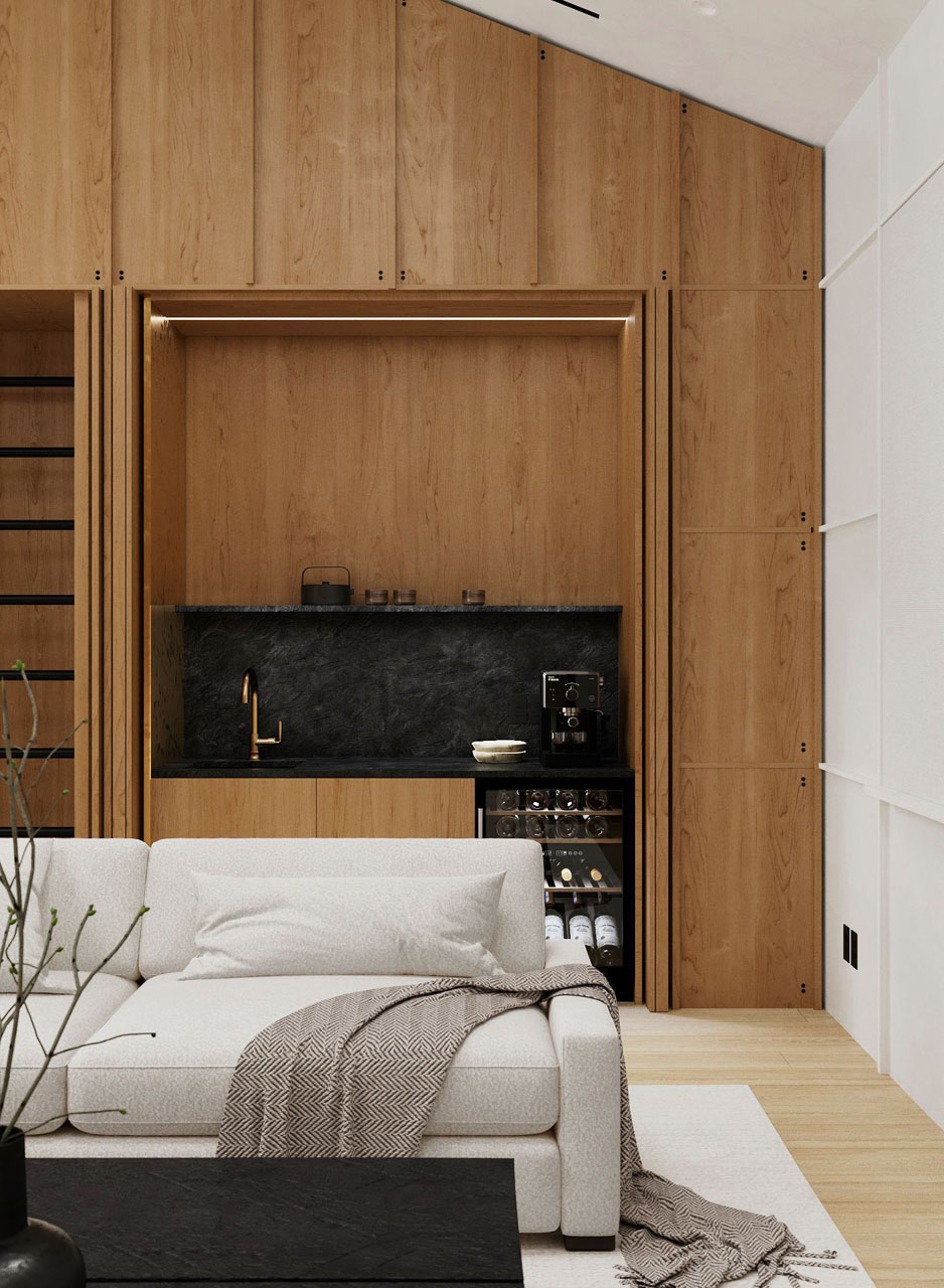 As you step inside, you’re immediately struck by the natural minimalism of the space. Every inch of the guest house is bathed in a warm, natural light that illuminates the beautifully crafted wooden floors and lime washed walls. The ambiance is serene and calming, making you feel instantly at ease.