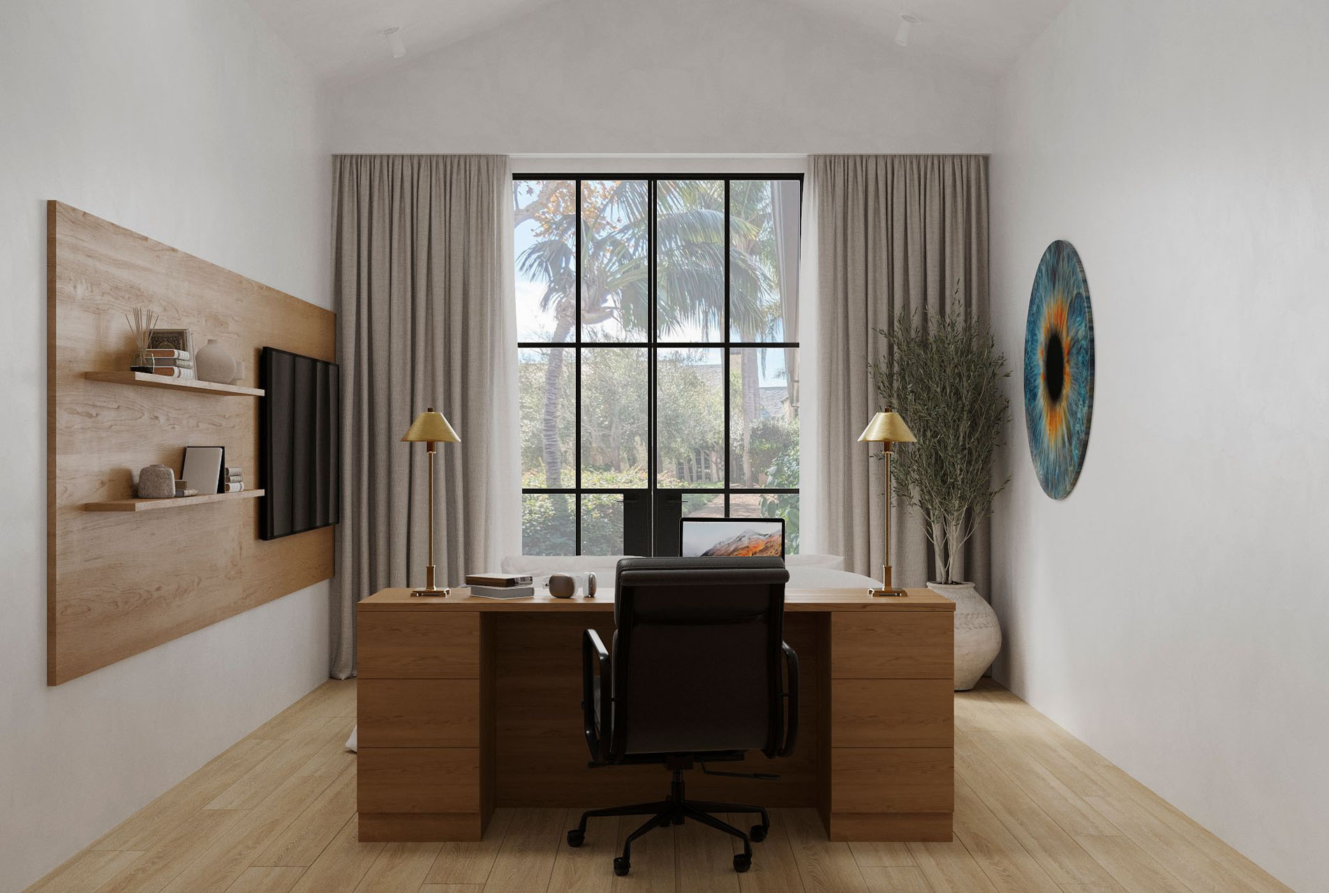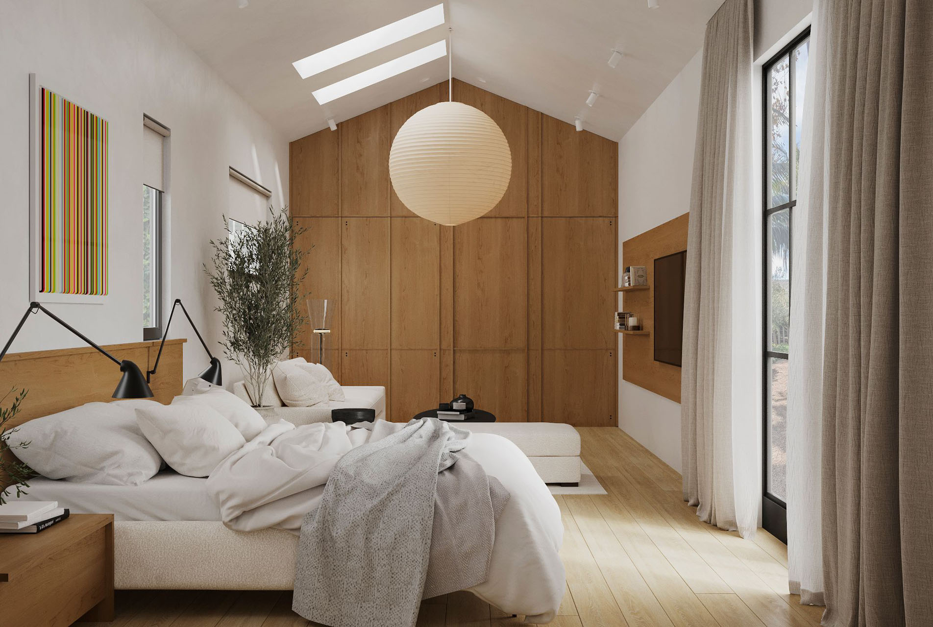 Having a view straight from the bed is another great feature of the studio guest room. It helps create a sense of openness and airiness, and also provides a calming and relaxing atmosphere.