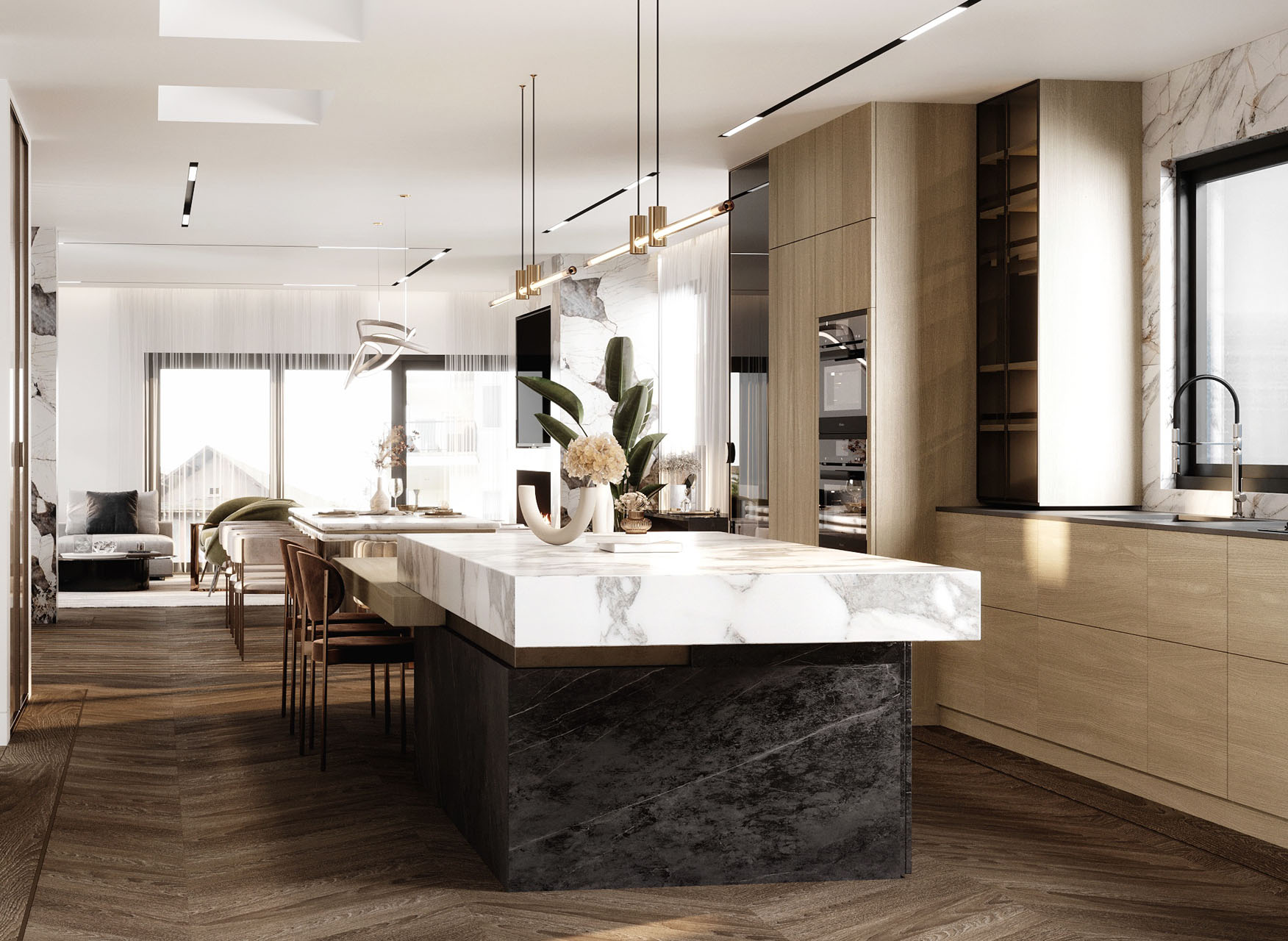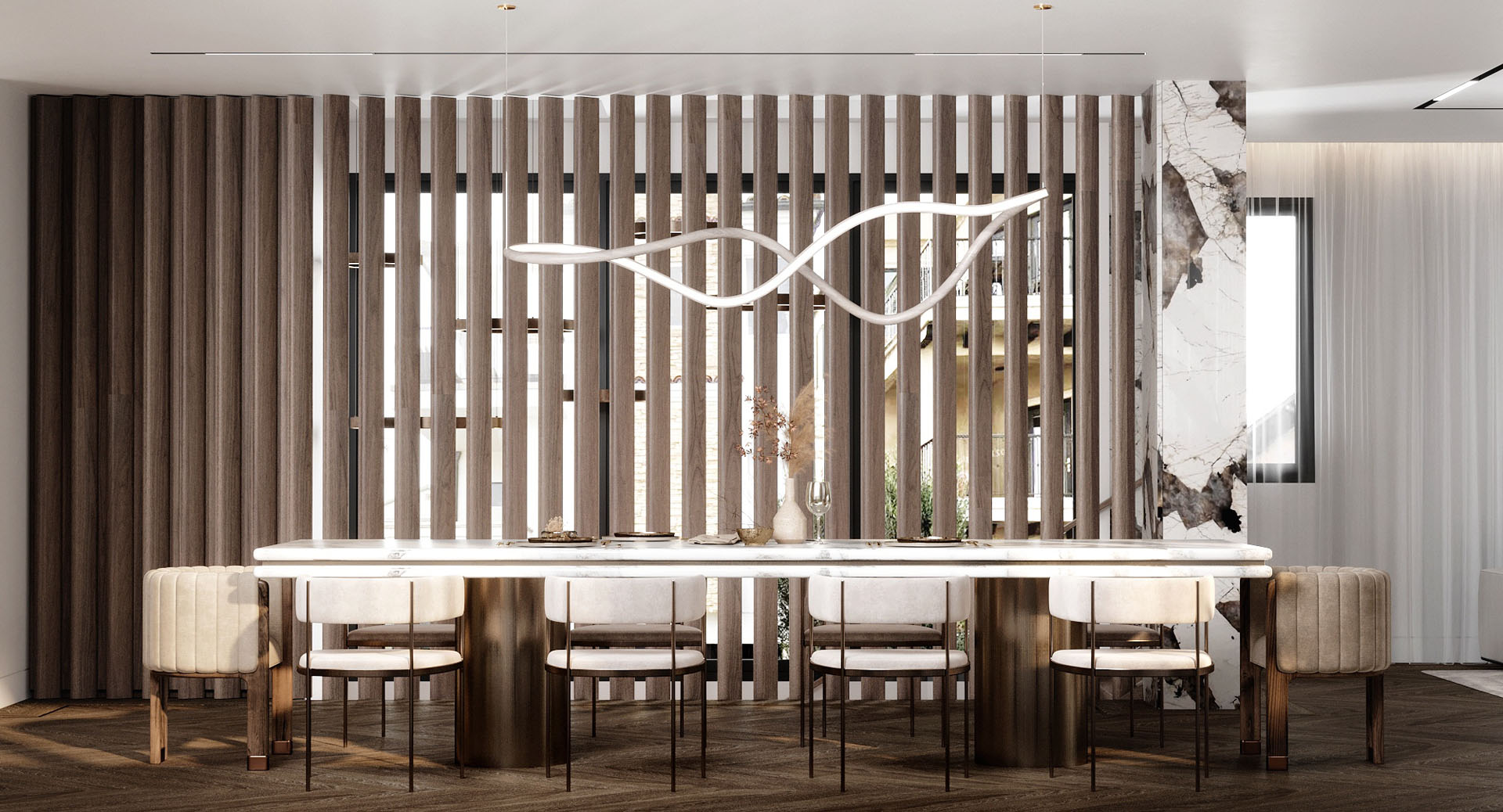 The use of unique materials and finishes throughout the home elevates its aesthetic appeal and creates a striking impression. European furniture pieces add an extra layer of luxury and sophistication, creating an ambiance of refinement and style.