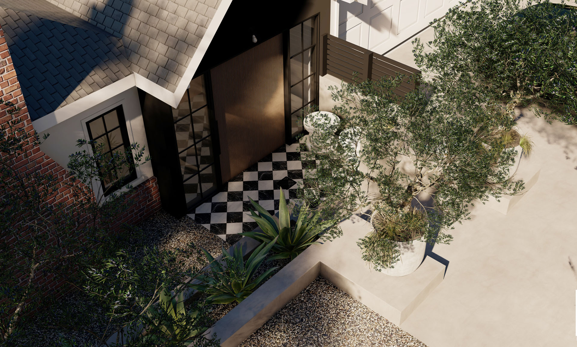 The flooring in this home is no exception to its impressive aesthetic. Chevron wood floors lend a dynamic, geometric quality that complements the other design elements flawlessly.