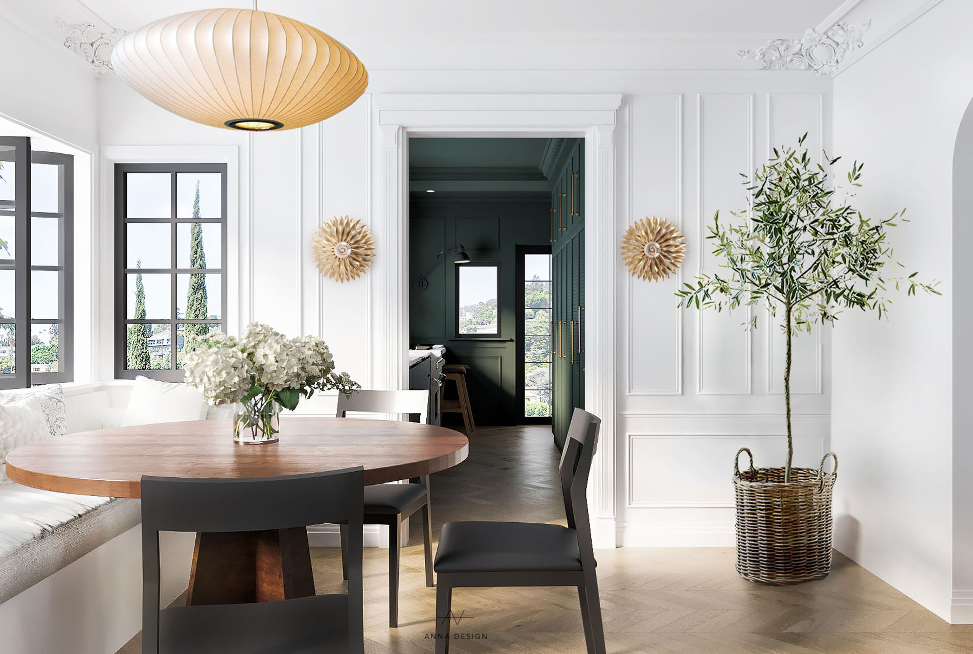 This inviting interior exudes a sense of warmth and comfort, yet the discerning owner sought to infuse it with a touch of refinement and personality. To achieve this, we incorporated elegant molding on the walls, along with delicate floral crown moldings that imbue a distinctly French atmosphere.