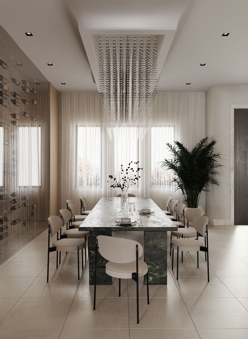 Welcome to your new home in Woodland Hills! Our full-service interior design for this modern, new construction seamlessly blends sleek lines with light, airy colors. Every detail has been meticulously crafted to create a harmonious and inviting space. Highlighting the design is a stunning green marble dining table, serving as a bold statement piece that anchors the room with elegance and sophistication. Experience the perfect balance of contemporary style and timeless beauty in every corner of your home.